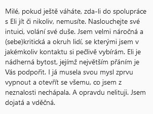napsaly referenci, která vyjadřuje to, co cítí o programu Lemurské Lůno a spolupráci semnou...